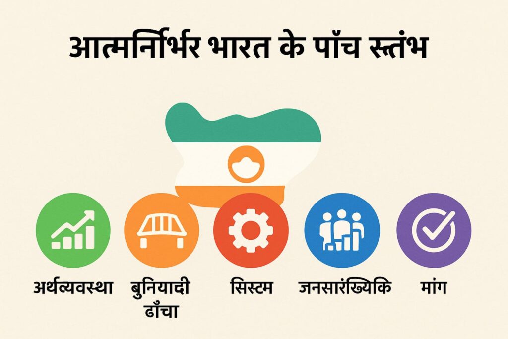 प्रधानमंत्री नरेंद्र मोदी ने जब आत्मनिर्भर भारत अभियान की घोषणा की, तो उन्होंने इसे पाँच प्रमुख स्तंभों पर आधारित बताया। ये स्तंभ भारत की विकास यात्रा के बुनियादी आधार हैं।